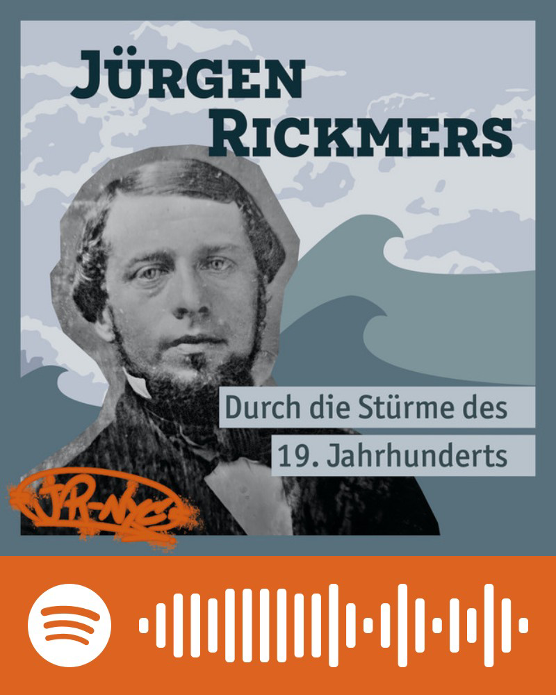 Coverdesign – Jürgen Rickmers – durch die Stürme des 19. Jahrhunderts. Ein Podcast von Honig & Gold. www.honigundgold.de